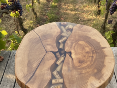Planche décorative en bois et résine – Bouchons de vin & capsules – Pièce artisanale unique