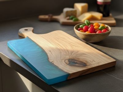 Planche à tapas bois & résine turquoise