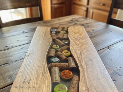 Planche apéritive en bois et résine – Capsules de bière – Pièce artisanale unique