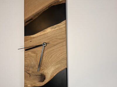 Horloge murale en bois et résine – Pièce artisanale unique