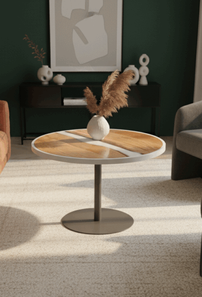 Guéridon en Chêne Massif & Résine Époxy Blanc