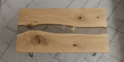 Table d’appoint bois et résine – Design galet, fabrication artisanale