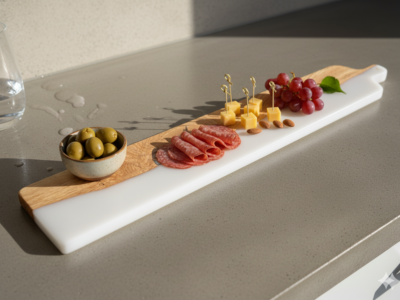 Que ce soit pour un apéritif entre amis, un dîner en famille ou une réception élégante, la planche apéro en olivier et résine sera la pièce maîtresse de votre table, ajoutant une note de sophistication et de convivialité à tous vos moments gourmands. N’hésitez pas à combiner cette planche avec d’autres accessoires en bois et en résine pour créer une ambiance harmonieuse et chaleureuse.